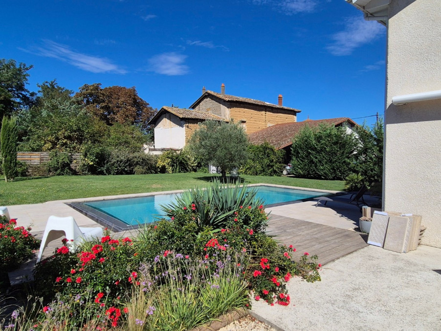 Venez découvrir cette ancienne ferme rénovée avec soin, offrant 4 chambres, chacune avec son point d’eau, un salon, une salle à manger, une mezzanine lumineuse et une belle hauteur sous plafond. Le jardin paysagé, composé d’une piscine miroir ainsi que d’une dépendance de 60 m², complète ce bien rare, idéal pour accueillir une famille ou un projet. Chauffage récent (climatisation réversible, PAC, poêle à granulés ,Fuel), prestations de qualité : un bien, alliant confort et charme, situé à 1 h de Lyon. DPE en cours.